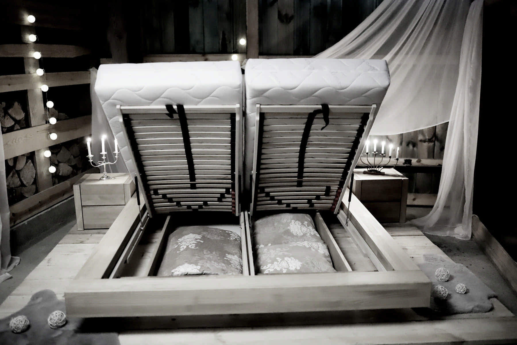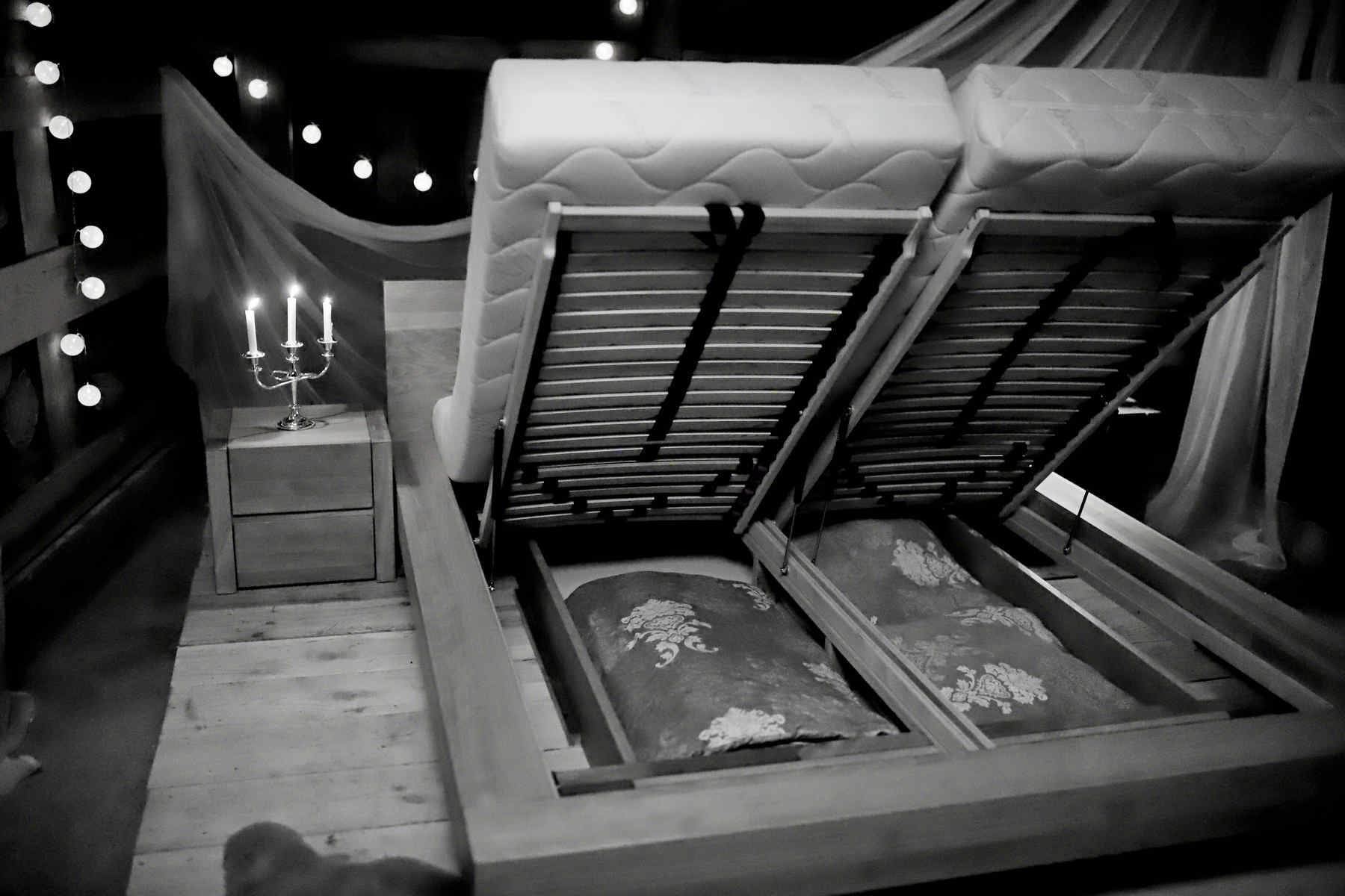 Z walorów użytkowych należy zwrócić uwagę na pojemnik na pościel, który należy do uposażenia standardowego łóżka lewitującego Goliat. Bardzo łatwy dostęp poprzez uniesienie stelaży pozwala na sprawne chowanie i wyjmowanie kołdry, poduszek. Dzięki takiej skrzyni przechowującej pościel, oszczędzamy miejsce, energię i czas na przenoszenie jej w inne miejsca sypialni.
