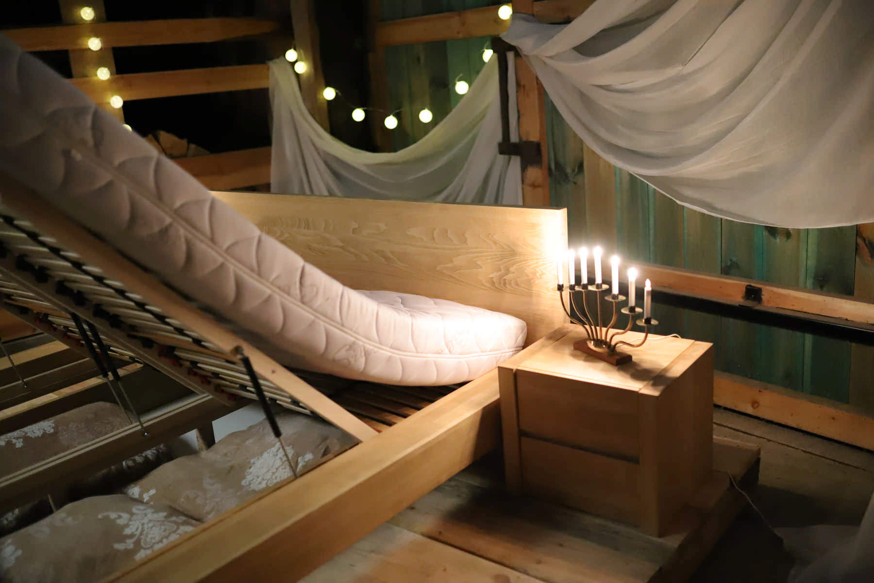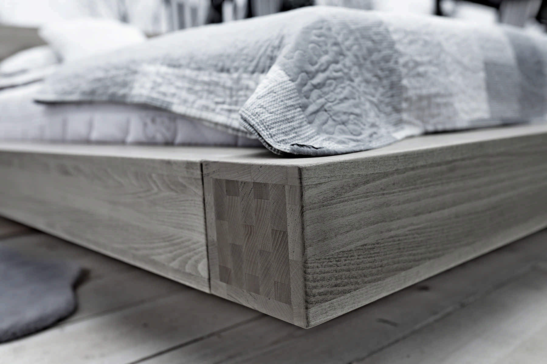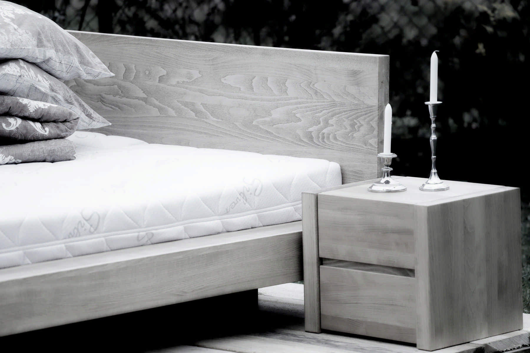 Zestaw GOLIAT z litego drewna DĄB – łoże lewitujące z poj. na pościel, 160x200 cm plus dwie szafki + materac