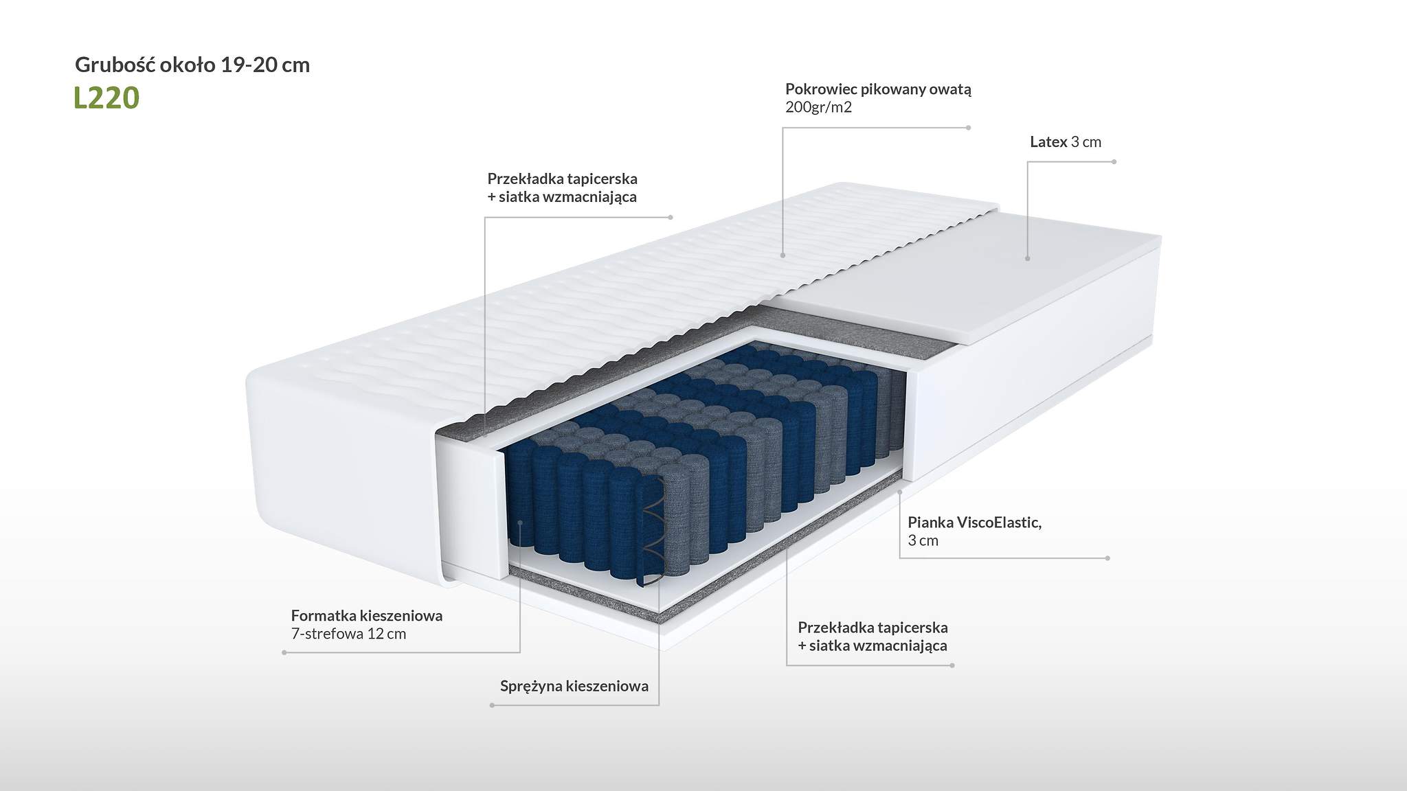 Allat L220 materac kieszeniowy z visco i lateksem 7 stref twardości 160x220