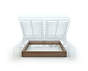 Oznacza to, że każda ze stron pojemnika jest o ok. 10 cm schowana w głąb w stosunku do lica ramy i frontów łoża. W praktyce takie rozwiązanie pozwala na zaoszczędzenie miejsca w sypialni. W powstałych lukach możemy swobodnie kłaść telefon, pantofle. Dno pojemnika wypełnione płytą HDF.