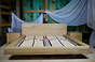 KAMA – łoże 140x200 cm z twardego drewna bukowego, typ lewitujące, z pojemnikiem na pościel
