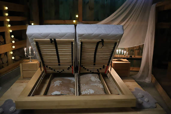 Do wyposażenia łoża należą dwa stelaże w systemie mbox, to takie, które posiadają siłowniki gazowe i są spójne z ramą stelaży i nie trzeba ich specjalnie przykręcać do konstrukcji nośnej łóżka. Dlatego są niesamowicie praktyczne w użytkowaniu i nie trzeba ich składać, są już gotowe w użyciu i całość konstrukcji po prostu umiejscawia się w wnęce łoża.