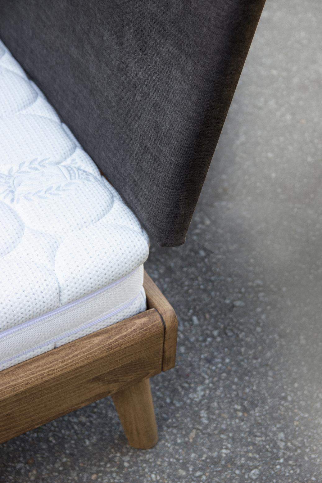 Na uwagę zasługuje wygląd nożek, które lekko są podgiete na zewnątrz, całkowicie lite z drewna dębowego jak całe łóżko, niezwykle mocne skręcane z elementami łoża przy pomocy śrub i wprasowanych gwintów.