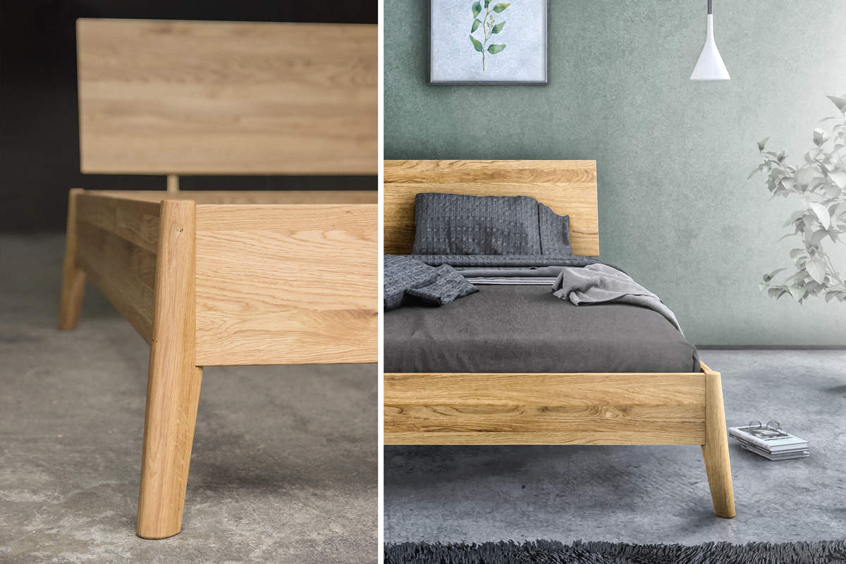 Łoże dębowe ROLF ze stylizowanymi nogami