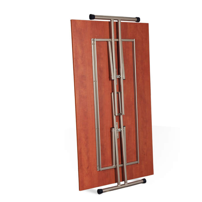 Stół Składany duzy z prostokątnym blatem o wymiarach 180x90 cm. Noga stołu jest okrągła o średnicy 32 mm. Stoły dostępne w dwóch grubościach blatów: 18 mm i 28 mm.