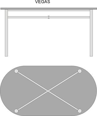 Stół Vegas o grubości okrągłego blatu 18 i 28mm, rozmiar 120x80 cm, o okrągłych nogach fi, wymiarze 32 mm.