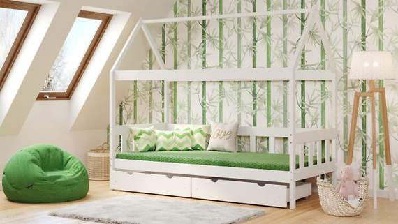 Domek dla dzieci SZUWAREK 90x200 to mebel z drewna sosnowego będący połączeniem łóżka z miejscem do zabawy. Poza podstawową funkcją spania nocą daje możliwości goszczenia i zapewnia atrakcje dla rówieśników dzieci w ciągu dnia.