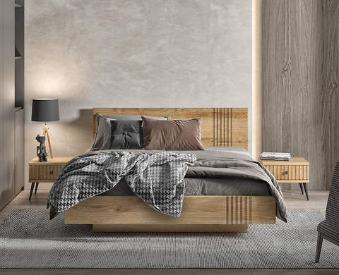 ŁOŻE DĘBOWE TRYSIL WRAZ Z DWIEMA SZAFKAMI NOCNYMI