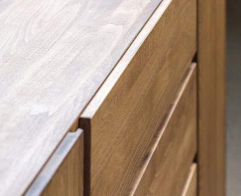 Drewno bukowe zastosowane w tym meblu, podczas produkcji przechodzi żmudny etap ręcznego wcierania oleju (w wybranym wybarwieniu z palety kolorów). Zabieg powtarzany jest kilkakrotnie, ostatnim etapem jest nanoszenie wosku.