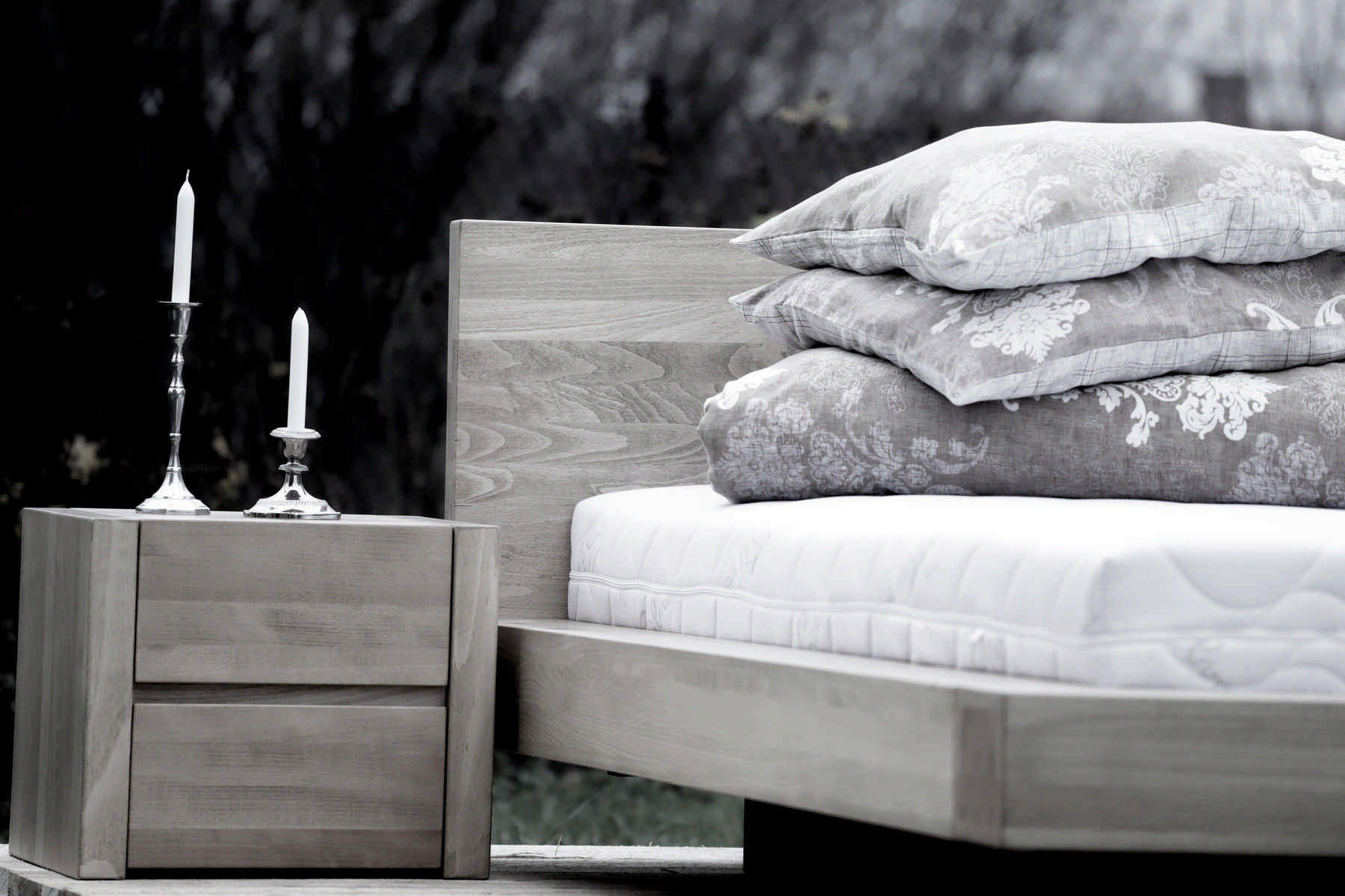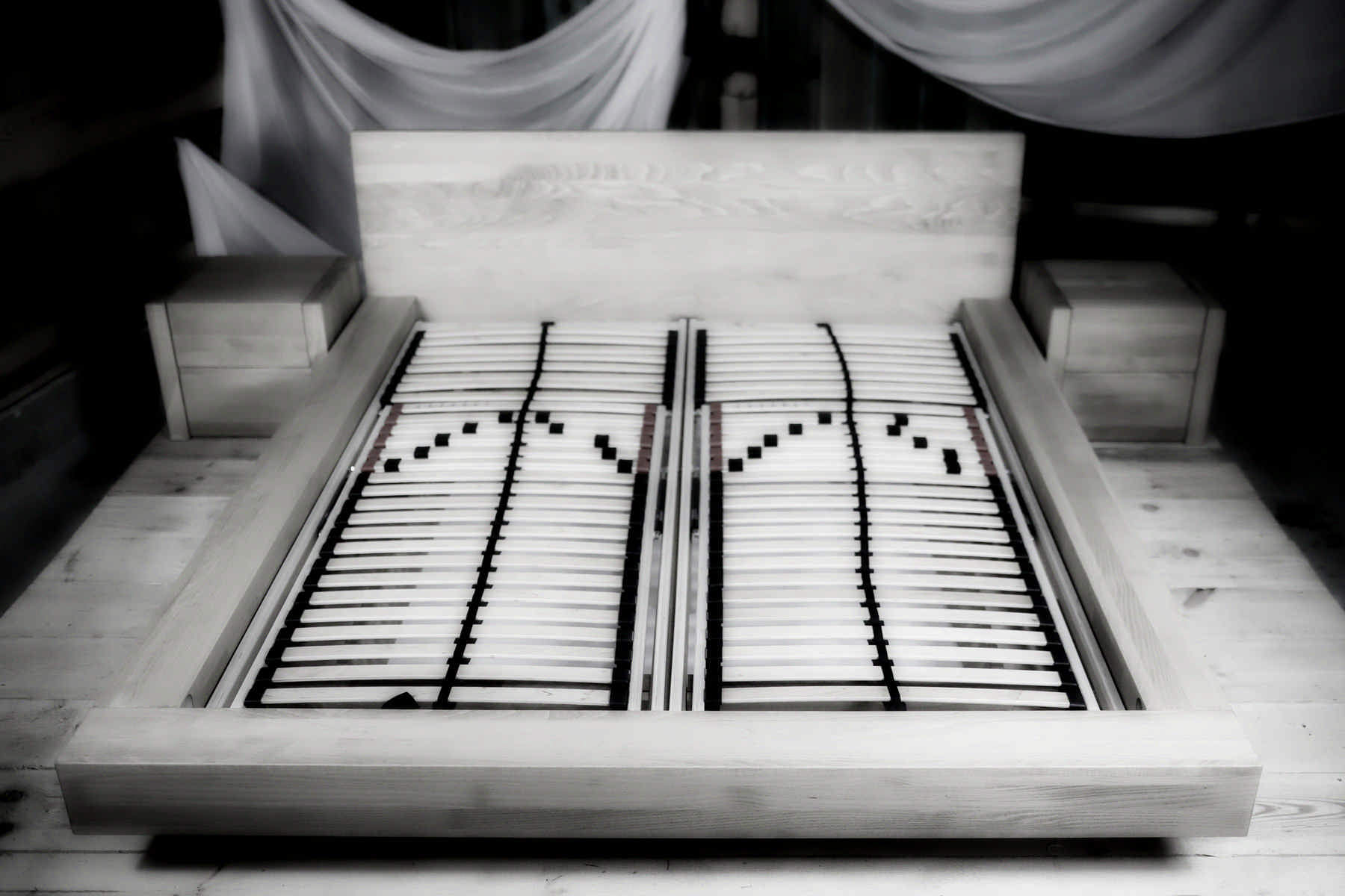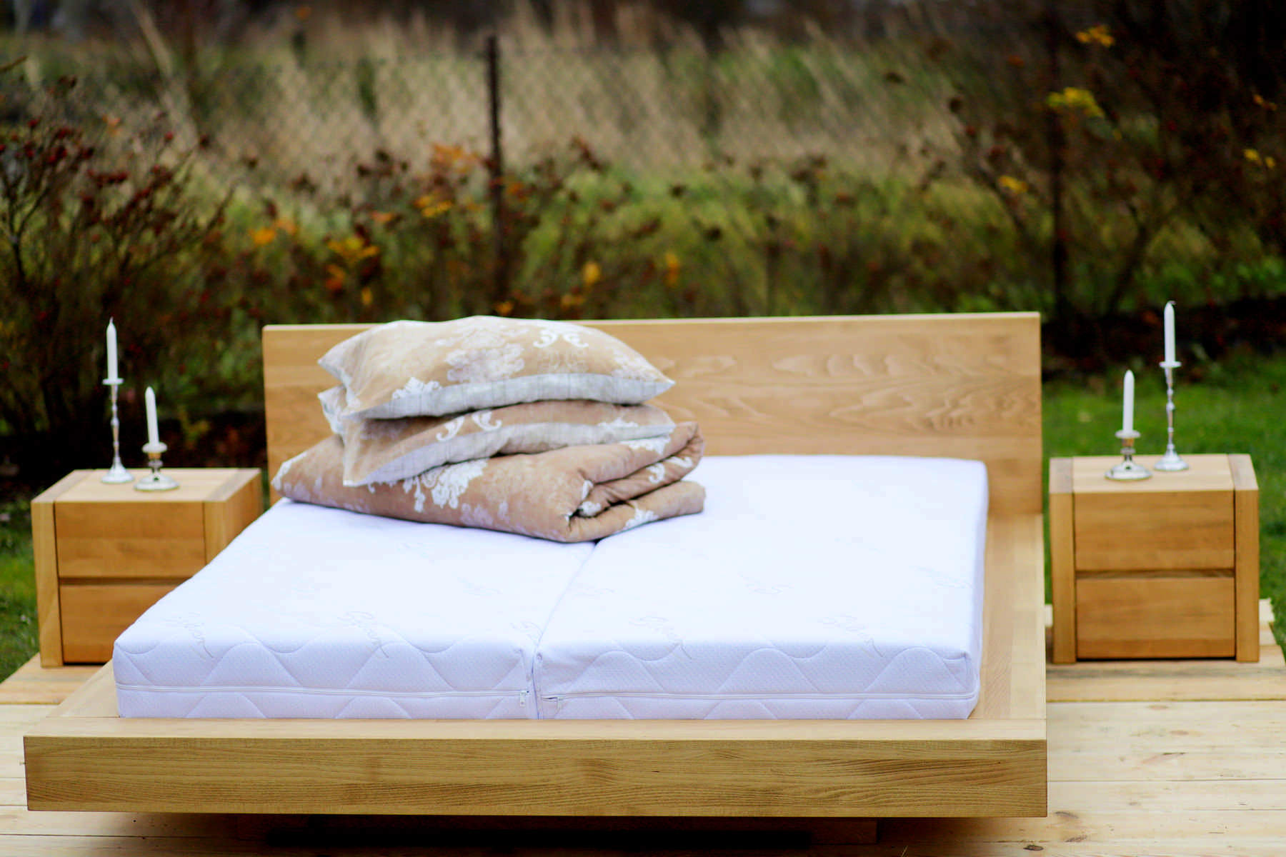 Zestaw GOLIAT z litego drewna DĄB – łoże lewitujące z poj. na pościel, 160x200 cm plus dwie szafki + materac